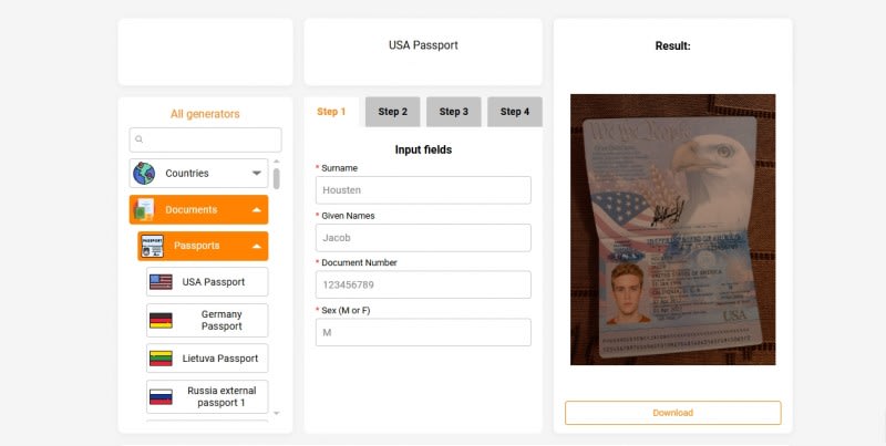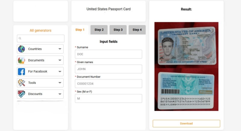 This software is for creating high-quality photos of ID documents. You can create passports, ID cards, driver’s licenses, bills, and bank statements of different countries in just 2 minutes. . Enter data in all fields, upload your photo and signature, and click Generate button